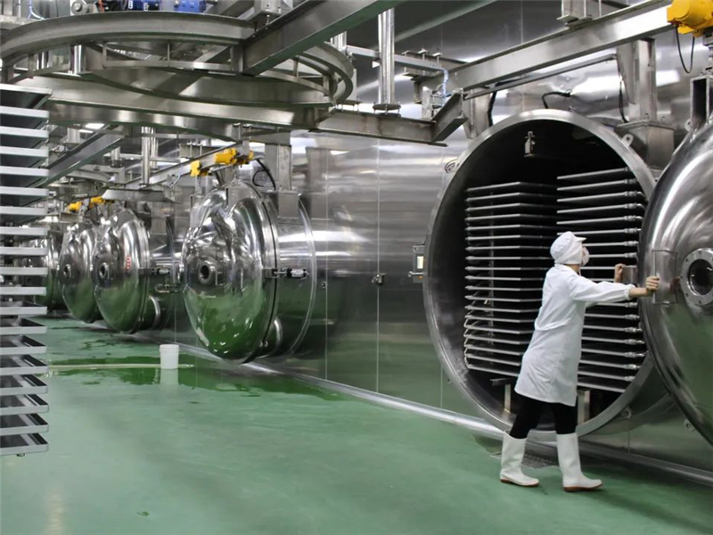 凍干工廠(chǎng)一般由粗加工車(chē)間、精加工車(chē)間、高溫冷藏庫(kù)、低溫冷藏庫(kù)、速凍隧道、凍干設(shè)備間、卸料與包裝車(chē)間、車(chē)品儲(chǔ)藏庫(kù)等組成。凍干成套設(shè)備一般由凍干倉(cāng)、控制系統(tǒng)、加熱系統(tǒng)、物料運(yùn)輸系統(tǒng)、制冷系統(tǒng)、冷卻水系統(tǒng)、氣動(dòng)系統(tǒng)、真空系統(tǒng)組成。公司擁有30年的技術(shù)積累,在食品凍干領(lǐng)域擁有50%以上的市場(chǎng)占有率,為全球知名的凍干工廠(chǎng)提供全套的設(shè)備及自動(dòng)化配套,可以提供不同型號(hào)的設(shè)備,裝料重量從300kgs~2500kgs均可定制。交貨周期和安裝調(diào)試周期可按客戶(hù)要求制定,售后團(tuán)隊(duì)專(zhuān)業(yè)、反應(yīng)迅速。