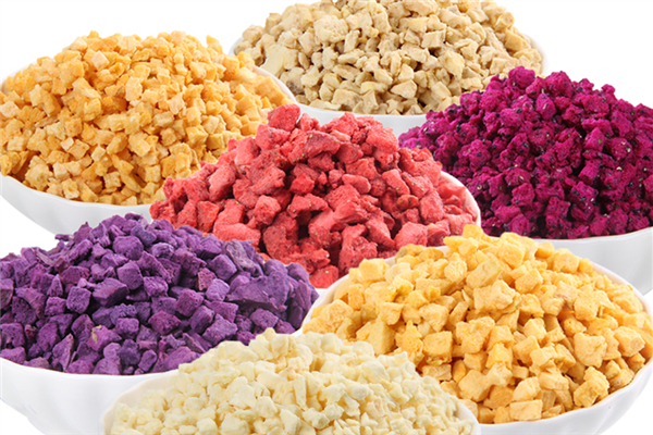 制作凍干果蔬一般通過清洗處理、切片處理、冷凍處理、真空處理、低溫干燥等步驟使果蔬中的水分進行蒸發(fā),實現整個凍干過程。